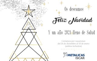 Este año cerramos por NAVIDAD del 24 de diciembre de 2020 al 10 de enero de 2021 (ambos incluidos) METÁLICAS ÍSCAR, S.L.U. C/Colombia, 4 47420 ÍSCAR (Valladolid) +34 983 611 640